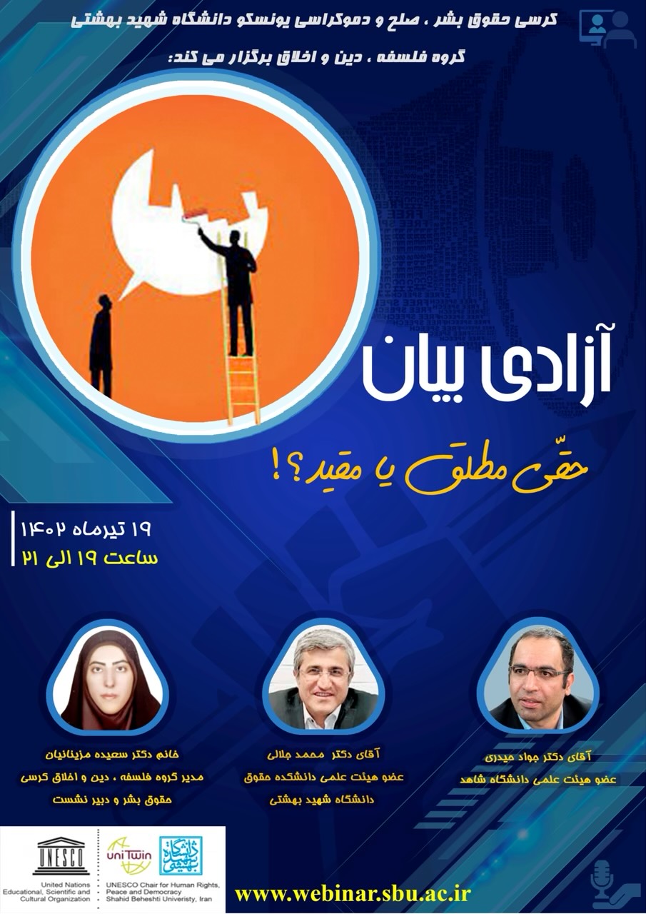 صفحه اصلی «سلسله نشستهای حقهای بشر از منظر فلسفه و دین» 19420 بازدید print share گروه فلسفه، حقوق و دین مرکز تحقیقات و کرسی حقوق بشر، صلح و دموکراسی دانشگاه شهید بهشتی برگزار می کند: «سلسله...