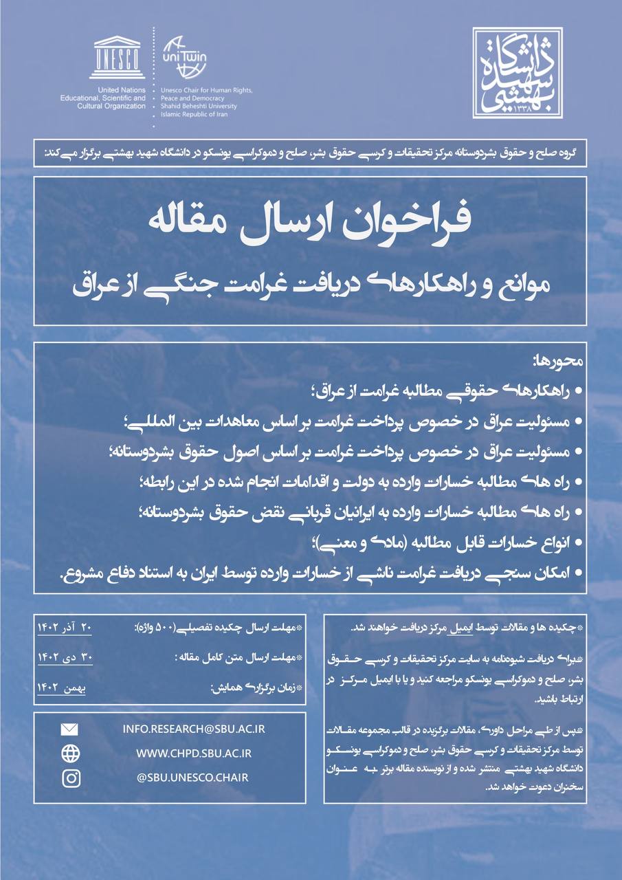 گروه صلح و حقوق بشردوستانه مرکز تحقیقات و کرسی حقوق بشر، صلح و دموکراسی یونسکو در دانشگاه شهید بهشتی برگزار میکند: