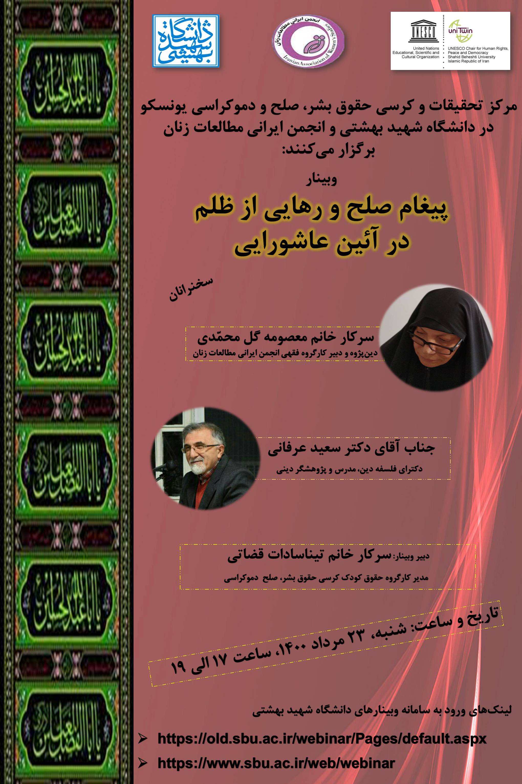 صفحه اصلی زنان و حقوق 13154 بازدید print share کسی حقوق بشر صلح و دموکراسی برگزار میکند: زنان و حقوق آنلاین دو شنبه ۱۵ اسفند ساعت ۱۵ تا ۱۹ Webinar.sbu.ac.ir سخنرانان: خانم دکتر مهناز بیات خانم...