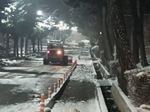 همچنین هر شب ۲۰ نفر از نیروهای اجرایی به‌صورت آماده‌باش کامل در عملیات برف‌روبی و رفع یخ‌زدگی معابر مشارکت داشتند. این عملیات با پشتیبانی کارکنان فضای سبز و اداره نقلیه دانشگاه انجام شد و به‌منظور حفظ ایمنی و تسهیل تردد، پاکسازی شن و نمک پاشیده‌شده در طول روز نیز در دستور کار قرار گرفت.